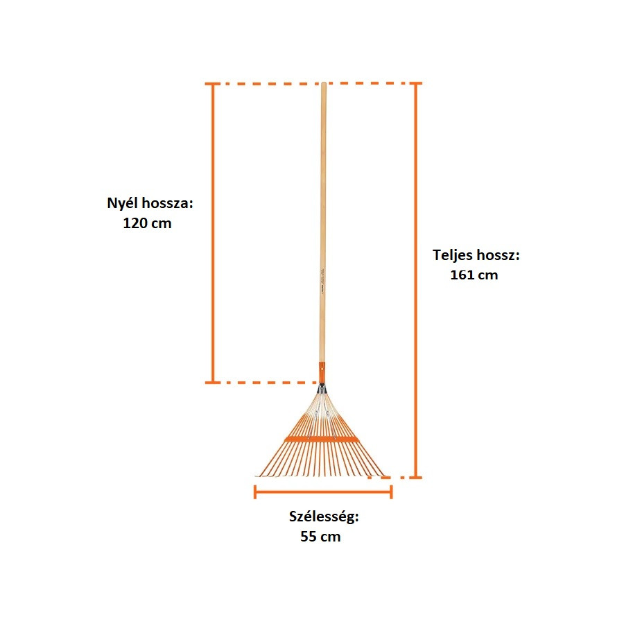 Fűseprű rugós fém 56 cm széles fej 22 ágú