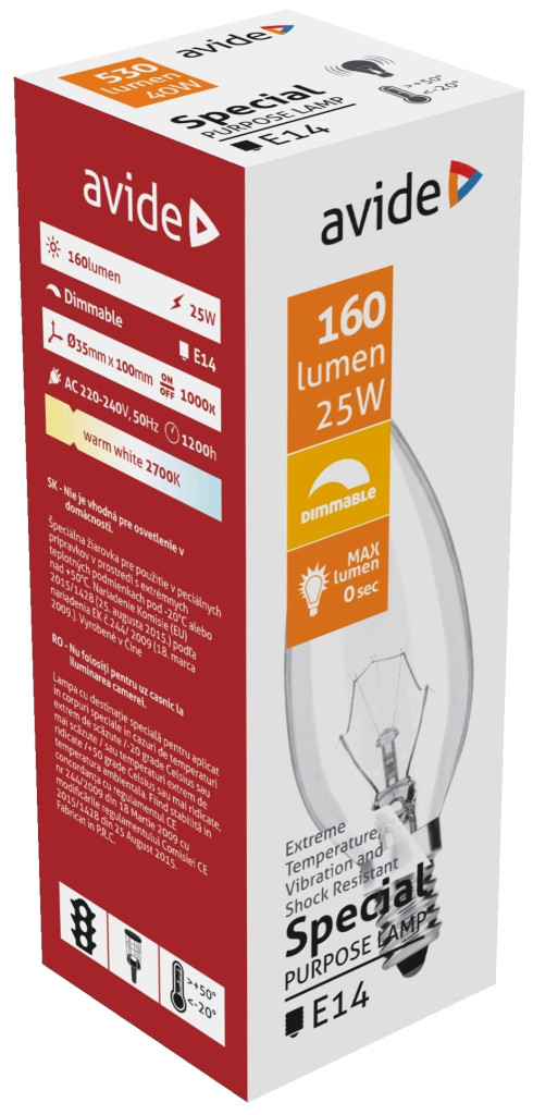 Izzó E14 25W Gyertya Speciális Avide