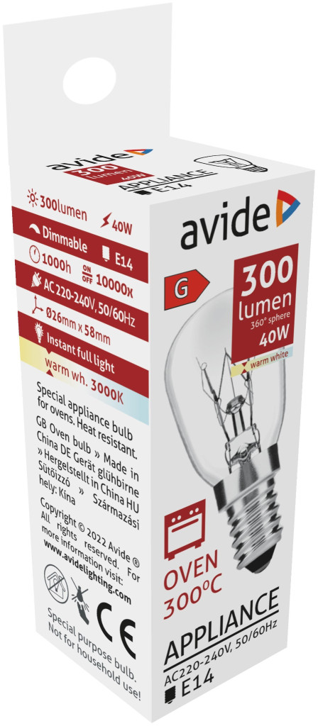 Izzó E14 40W hőálló sütőizzó 300°C Avide