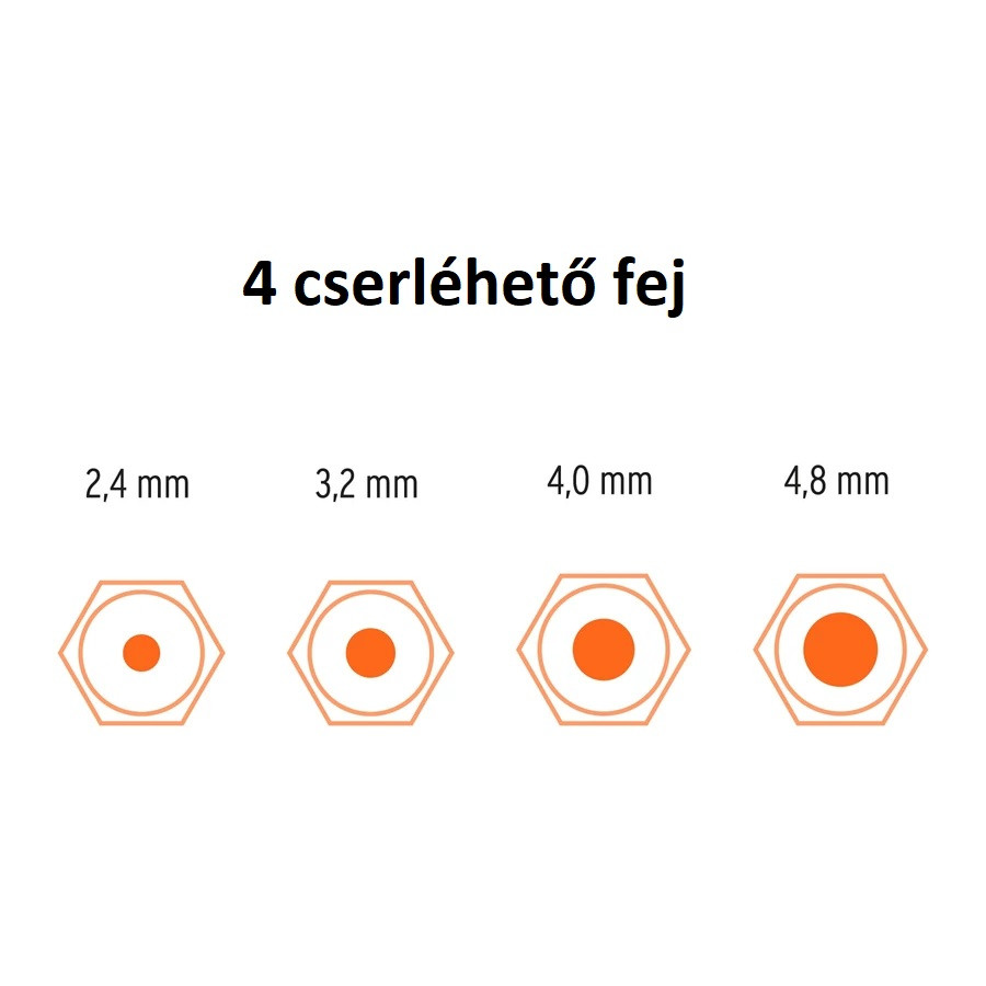 Popszegecshúzó 25 cm-es 4 db cserélhető fejjel