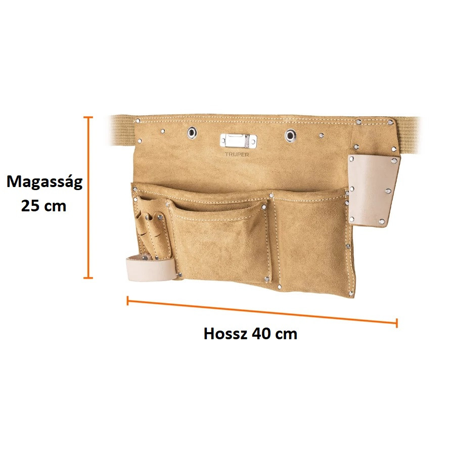 Szerszám és szegtartó bőrből, övvel 40 x 25 cm